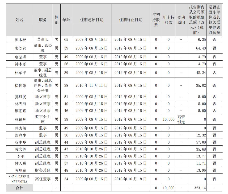 回顾2010年A股上市首年,林军平及廖创宾的薪酬分别为48.24万元、64.43万元。15年的时间,二人的薪酬分别涨了453.76万元、265.67万元。