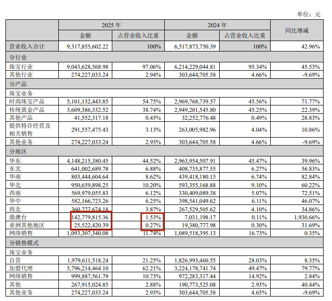 产品结构的优化成效显著。2025年,潮宏基来自时尚珠宝产品的收入同比激增72.16%,达到50.68亿元,增速远超经典黄金珠宝的22.45%,成为驱动营收增长的核心引擎。