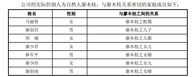 有意思的是,廖木枝当时的一致行动人并不是儿子廖创宾,而是女婿林军平,后者通过间接方式控制公司3.19%的股权。