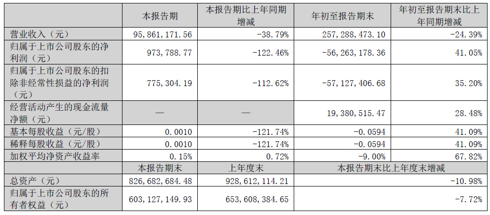 近期,高乐股份(002348)公告显示,公司前三季度营业收入2.57亿元,同比减少24.39%;归属于上市公司股东净亏损5626.32万元,基本每股收益亏损0.0594元。