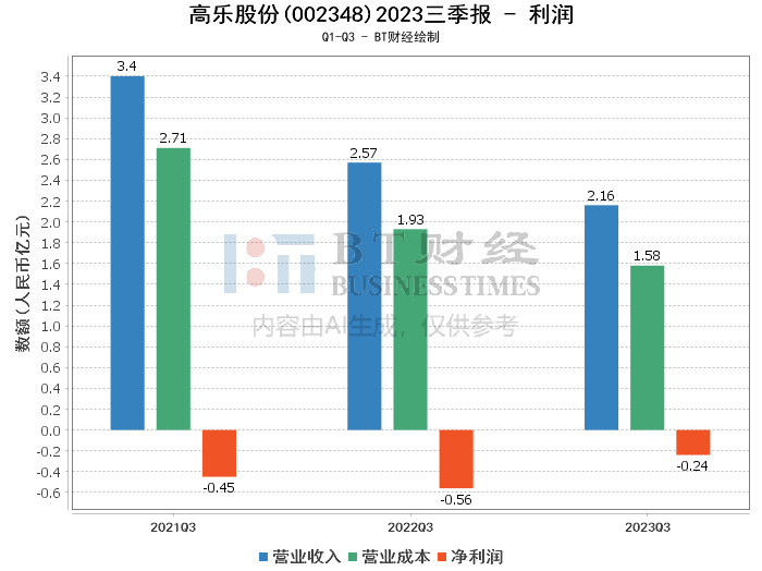 高乐股份(股票代码:002348)作为一家在玩具和互联网教育领域均有显著成就的上市公司,其2023年三季报透露了企业在这一年度的财务状况和经营成果。公司秉承“创意无限,欢乐童年”的核心理念,产品线丰富多样,研发能力强大,拥有超过1000种产品,其中“GOLDLOK”品牌在全球市场享有盛誉。通过全资收购和增资高乐教育,公司在教育领域的布局也日益深化,形成了玩具和教育双主营业务的协同发展格局。