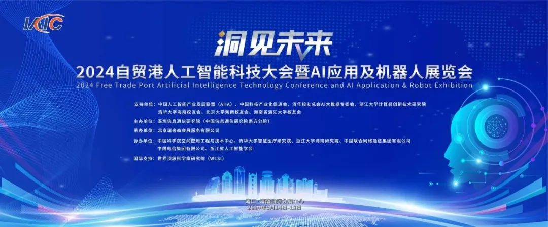 由中国人工智能产业发展联盟(AIIA)支持,深圳信息通信研究院(中国信息通信研究院南方分院)主办的2024自贸港人工智能科技大会暨AI应用及机器人展览会于2024年3月14日-18日在海口·海南国际会展中心举行。