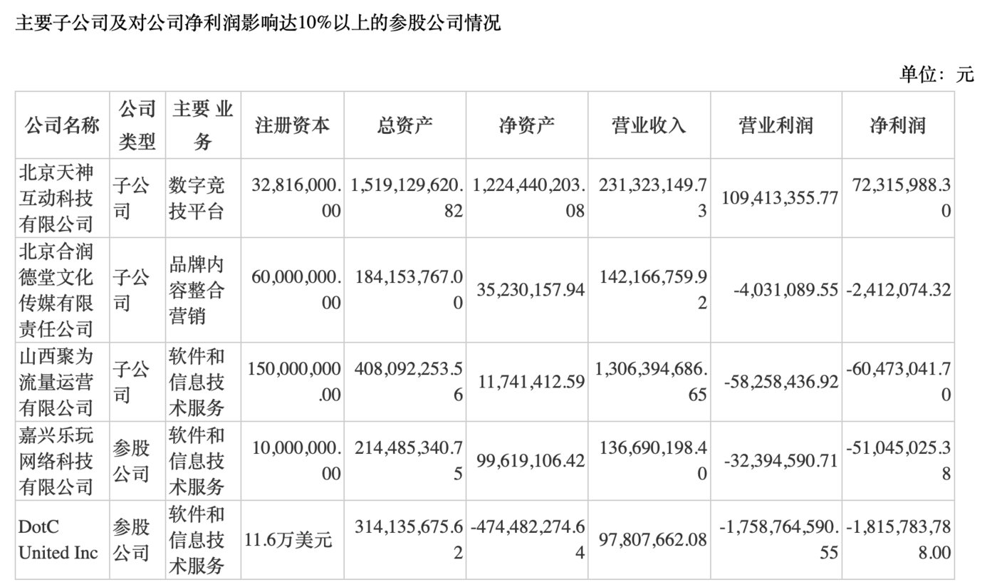年报显示,天娱数科去年对联营企业和合营企业的投资收益为-6.25亿元。其中,单DotC United Inc.(下称“DotC”)一家公司的投资损益就达到-6.06亿元。