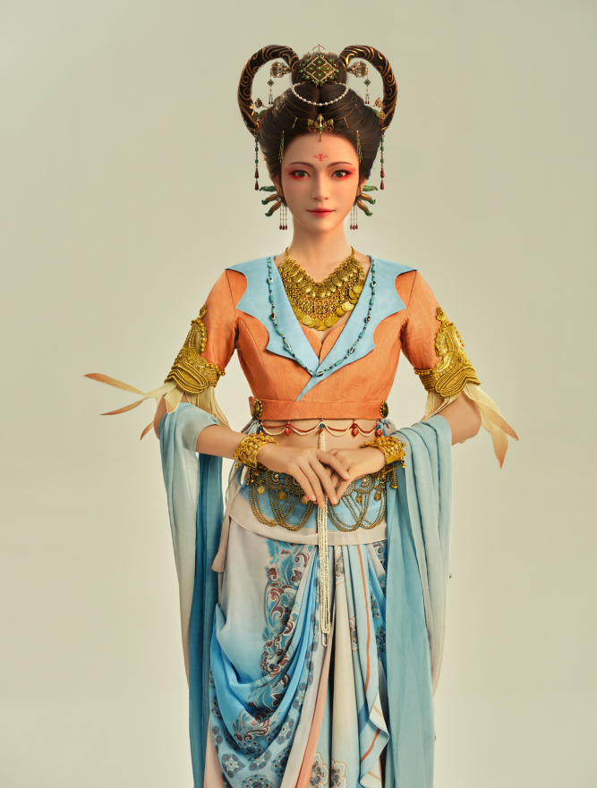 天妤是以敦煌飞天为蓝本打造的,也是首个文化出海的国风虚拟数字人。作为头部虚拟IP,从2022年4月上线开始,天妤做到了很多行业“首个”或“首次”,并一直以持续的创意内容生产能力和强大的智能营销赋能策略,稳居各大虚拟数字人排行榜前列。