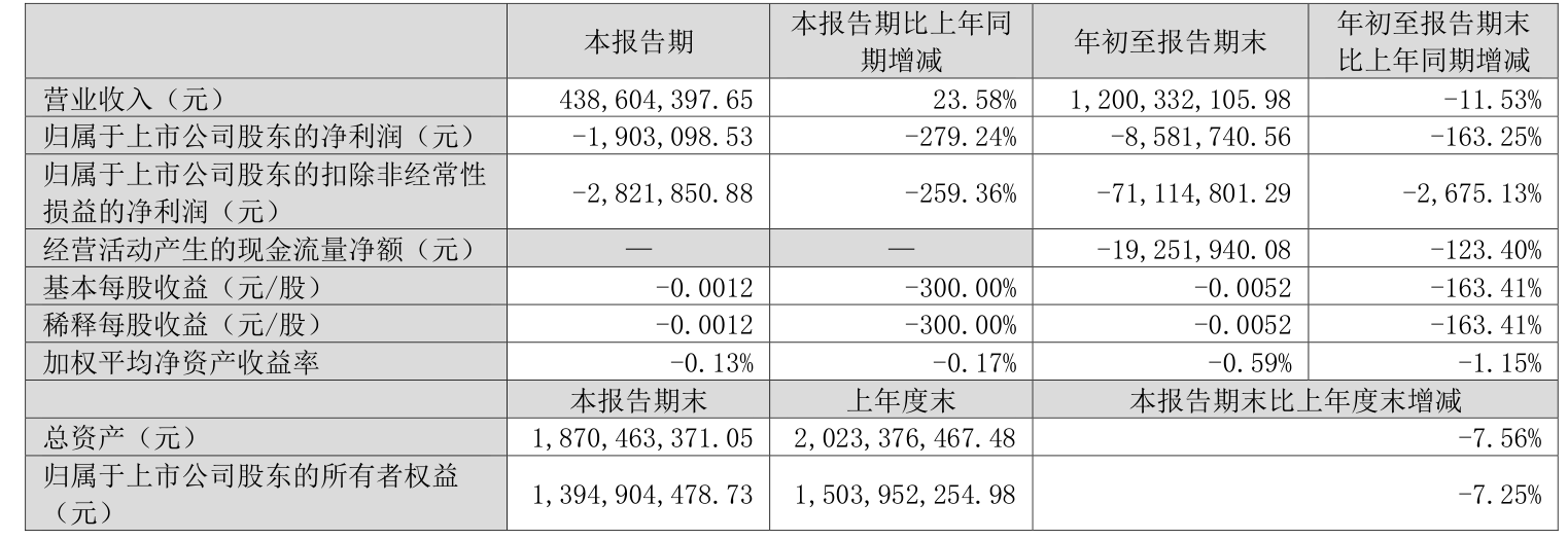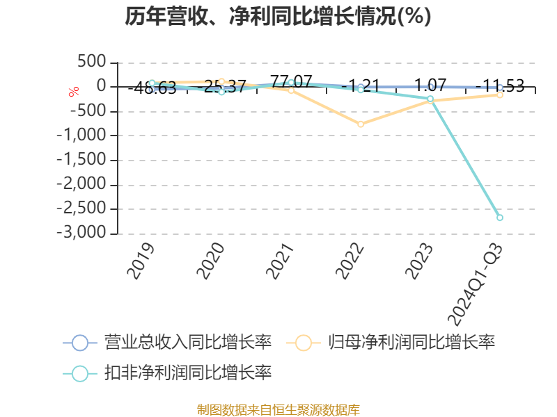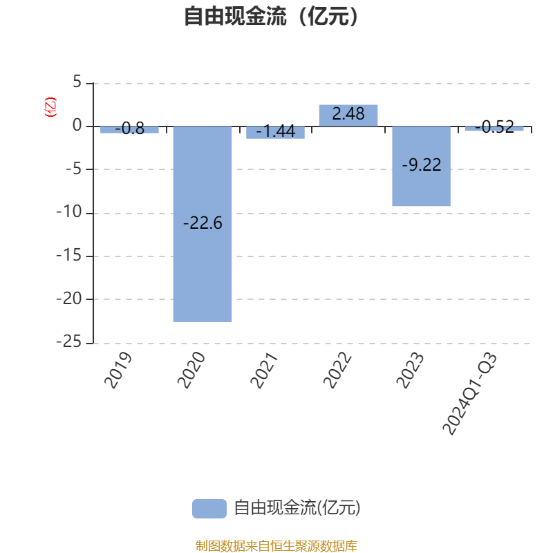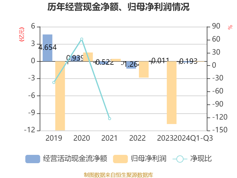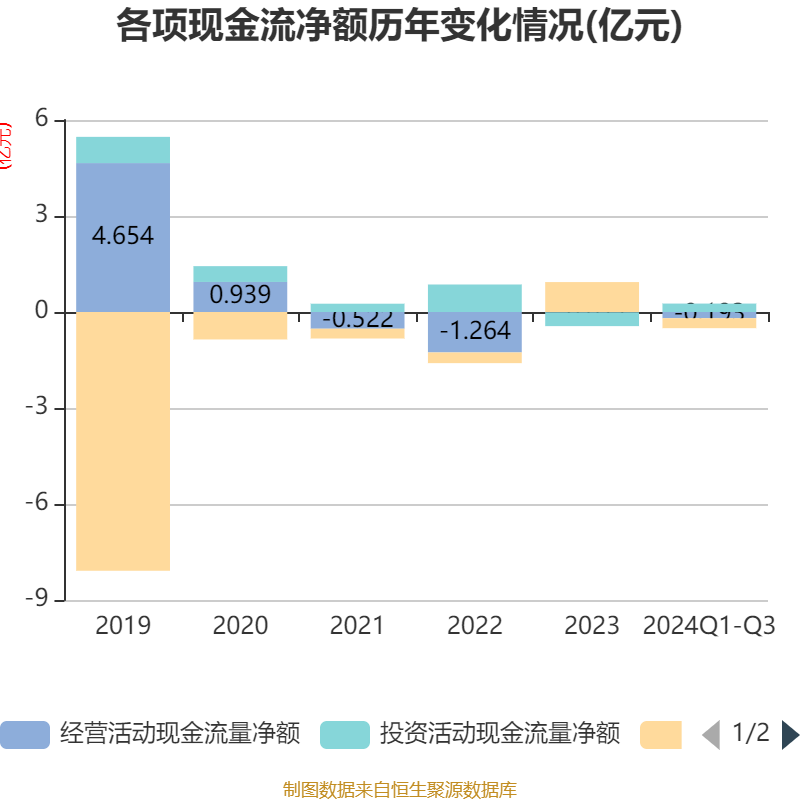 2024年前三季度,公司经营活动现金流净额为-1925.19万元,同比减少1.02亿元;筹资活动现金流净额-3116.56万元,同比减少1.61亿元;投资活动现金流净额2626.07万元,上年同期为858.48万元。
