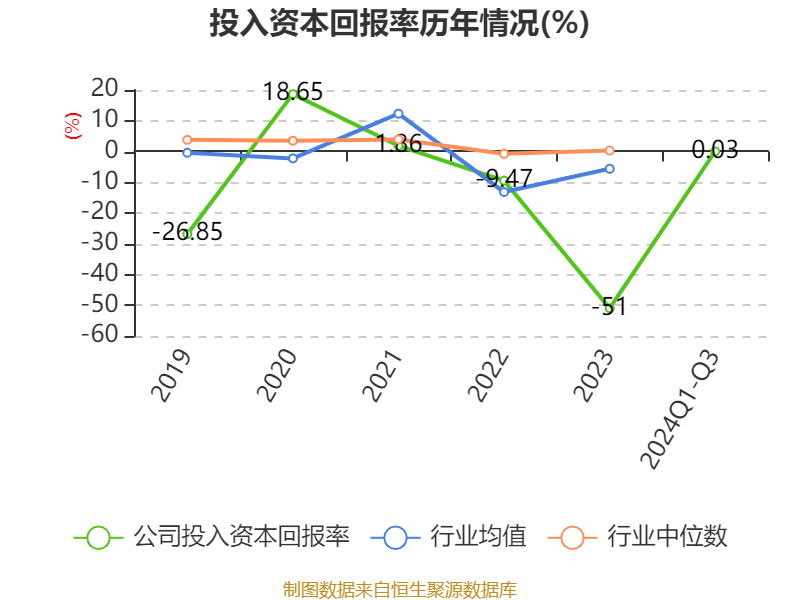 盈利能力方面, 2024年前三季度公司加权平均净资产收益率为-0.59%,同比下降1.15个百分点。公司2024年前三季度投入资本回报率为0.03%,较上年同期下降1.03个百分点。