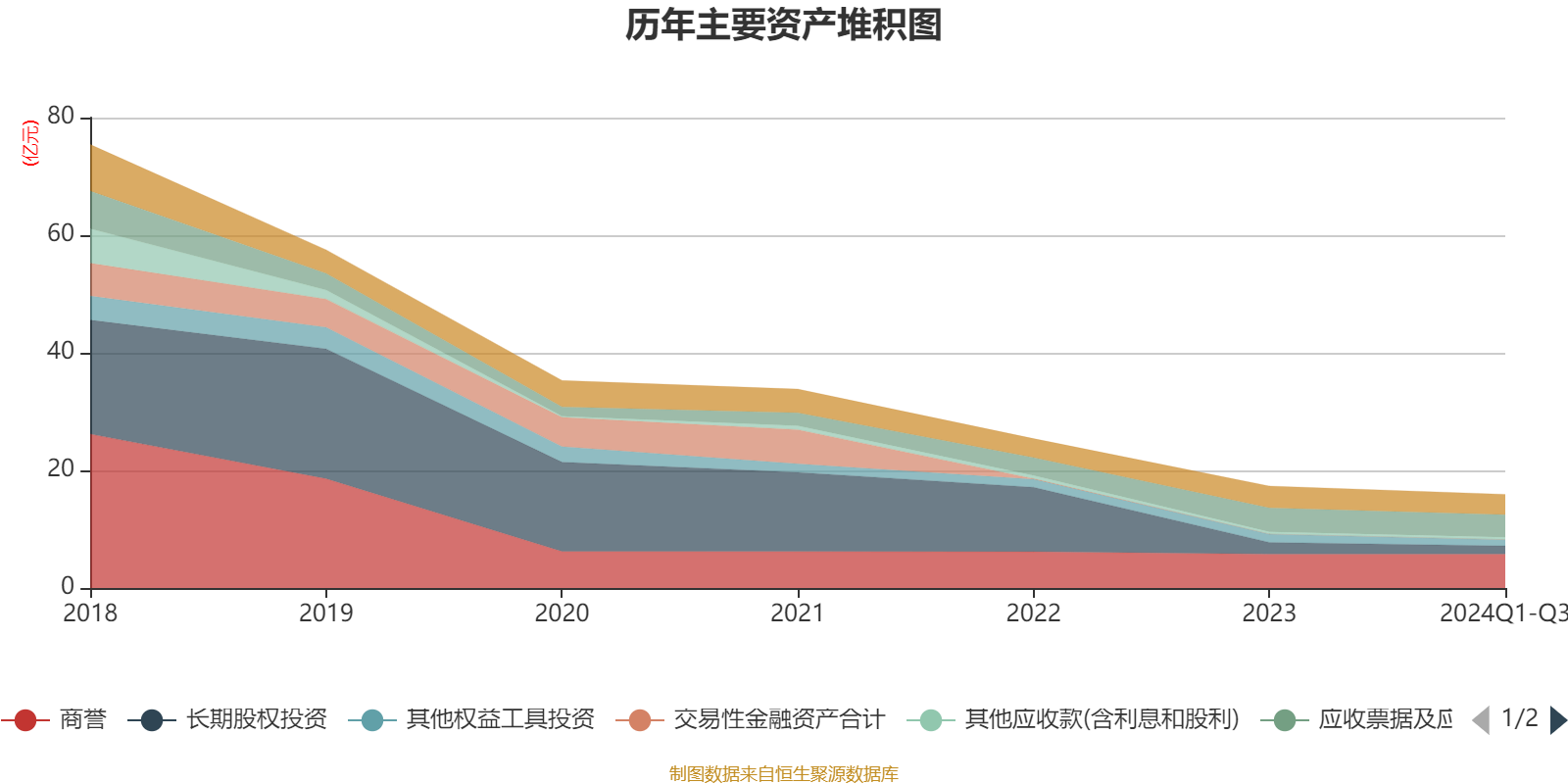资产重大变化方面,截至2024年三季度末,公司长期股权投资较上年末减少29.57%,占公司总资产比重下降2.34个百分点;商誉较上年末没有变化,占公司总资产比重上升2.33个百分点;其他权益工具投资较上年末减少25.11%,占公司总资产比重下降1.33个百分点;应收票据及应收账款较上年末减少5.48%,占公司总资产比重上升0.45个百分点。