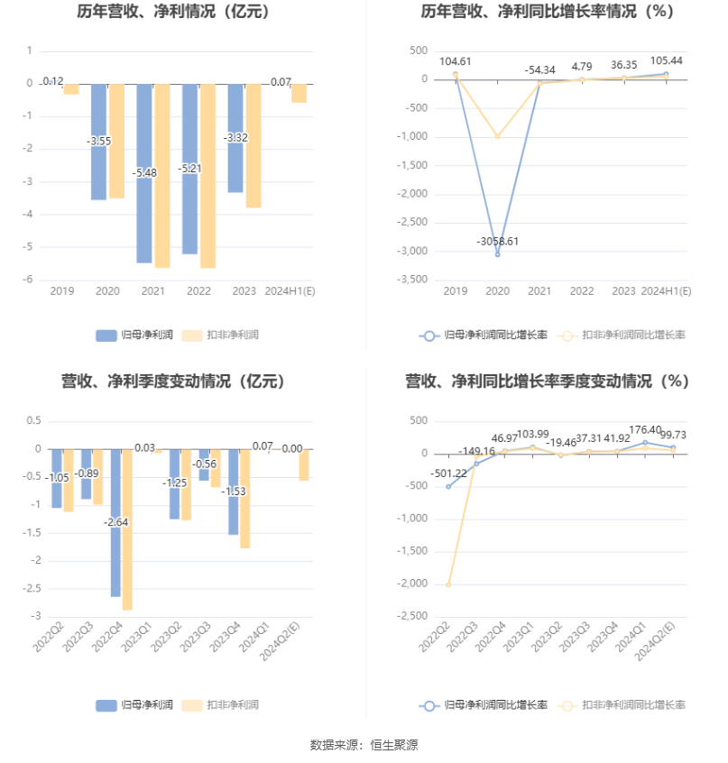 兴民智通(002355)7月12日晚间披露业绩预告,预计2024年上半年归母净利润535万元至800万元,上年同期亏损1.23亿元;扣非净利润亏损5500万元至5800万元,上年同期亏损1.34亿元;基本每股收益0.0086元/股-0.0129元/股。以7月12日收盘价计算,兴民智通目前市盈率(TTM)约为-14.93倍至-15.13倍,市净率(LF)约2.83倍,市销率(TTM)约3.66倍。