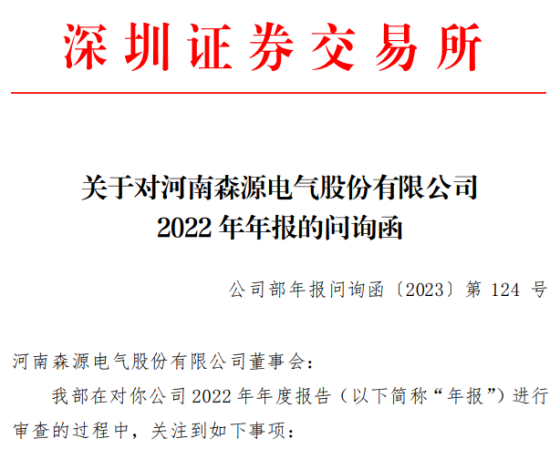 中国网财经5月17日讯(记者魏国旭)深交所近日对河南森源电气股份有限公司(以下简称“森源电气”)下发年报问询函,要求公司对应收账款坏账计提、控制权变更、业绩承诺未完成等问题作出说明。