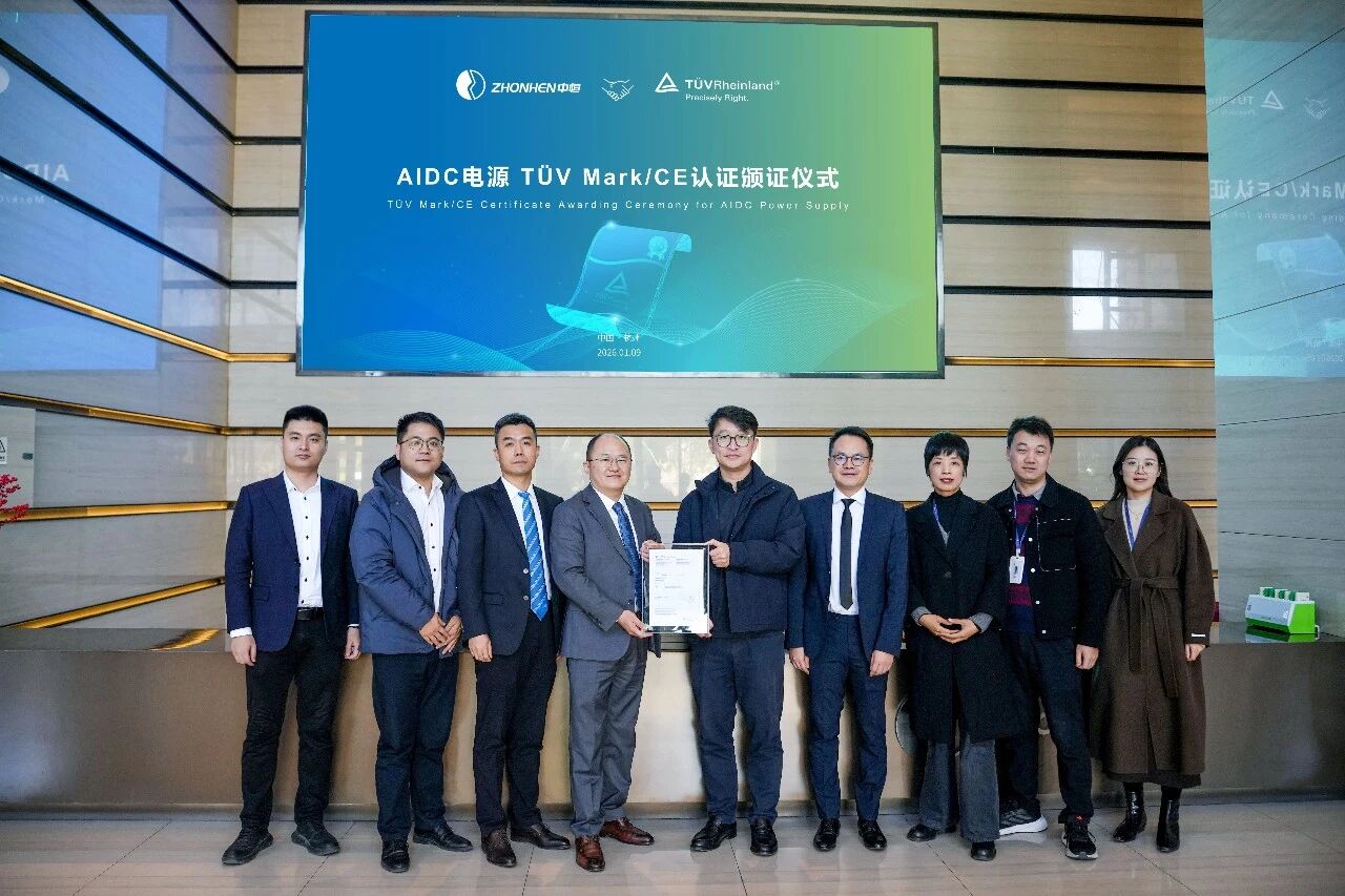 TüV莱茵作为国际公认的全球领先的第三方检验、检测和认证机构,通过严格的测试和评估,确保中恒电气的AIDC电源产品符合国际安全、质量和环保标准。这一权威性认证标志着中恒电气在AIDC电源领域的研发和制造能力已经达到国际认可水平。
