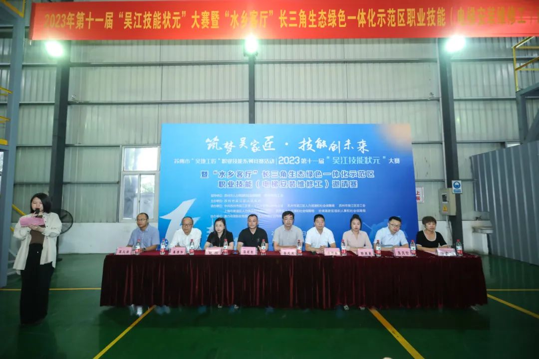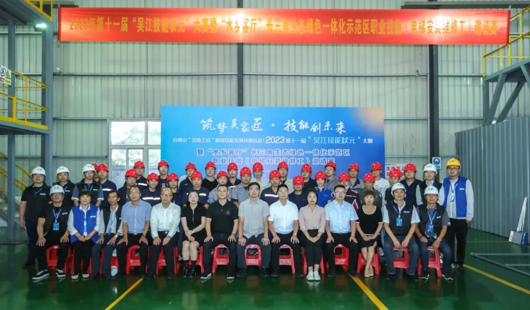 2023年9月24日,主题为“筑梦吴家匠·技能创未来”的第11届“吴江技能状元”大赛暨“水乡客厅”长三角生态绿色一体化示范区职业技能(电梯安装维修工)邀请赛在康力电梯总部工业园实训基地成功举行。
