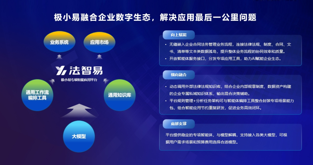 「极小易」企业合规专项智能体驱动企业合规迈入智能时代,面对日益复杂的法规环境和不断攀升的合规风险,「极小易」智能体应运而生,它是国内首个专注企业合规场景的智能体,集成“通用工具、智能审查、智能分析、知识应用”四大能力,其以“极小、极专、极简、极安”四大特性,深度融合百亿级参数大模型技术,直击企业合规管理痛点,打造轻量化、高价值的合规智能引擎,解决合规智能应用“最后一公里”难题。