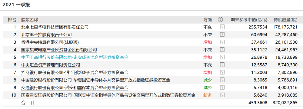 北方华创一季报披露的前十大流通股东显示,一季度,蔡嵩松管理的诺安成长、诺安和鑫、郑巍山管理的银河创新成长三只混合型基金均在列。