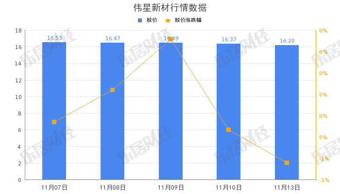 截至11月13日,伟星新材(002372.SZ)股价收盘报16.37元,跌1.04%,总市值257.92亿元。