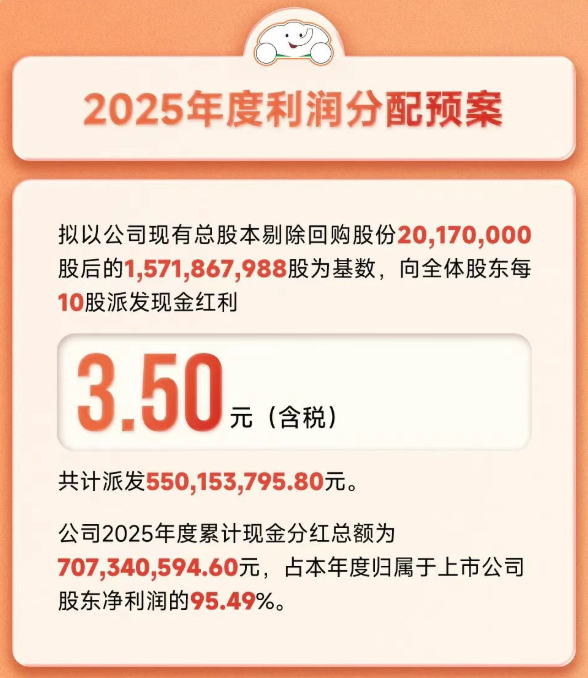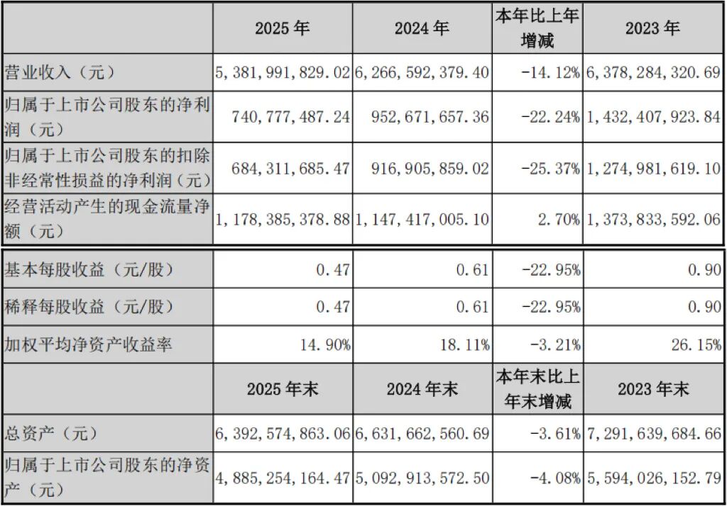 尽管业绩下滑,但公司经营性现金流净额达11.78亿元,与去年基本持平,显示出优异的盈利质量。同时,公司延续高分红传统,拟向全体股东每10股派发现金红利3.50元(含税),共计派发超5.5亿元,公司2025年度累计现金分红总额为7.1亿元,占本年度归属于上市公司股东净利润的95.49%。