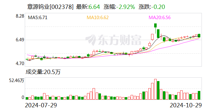 民生证券10月29日发布研报称,给予章源钨业(002378.SZ,最新价:6.64元)推荐评级。评级理由主要包括:1)公司公布2024年三季报;2)点评:钨精矿、锡、铜价格环比下跌,矿山利润受损;3)24Q3业绩拆分;4)未来核心看点:矿山受益钨价上涨,期待刀具业务持续放量。风险提示:产品价格大幅下跌、原材料价格大幅波动、项目进展不及预期等。