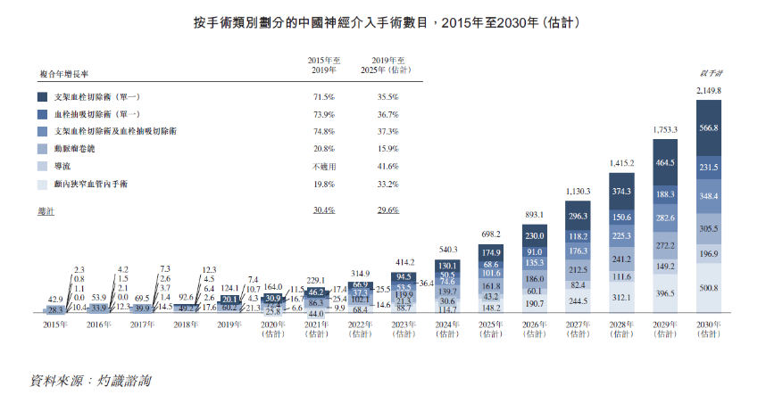 在中国,脑卒中的发病率高且为死亡的主要原因,2019年中国的脑卒中患者人数排名全球第一,全年手术量已超过12万台。随着脑卒中发病率不断上升、器械和影像设备技术进步、从业人员培训体系逐渐完善、神经介入手术数目及渗透率不断增加等多重因素刺激下,神经介入赛道迎来了快速发展期。