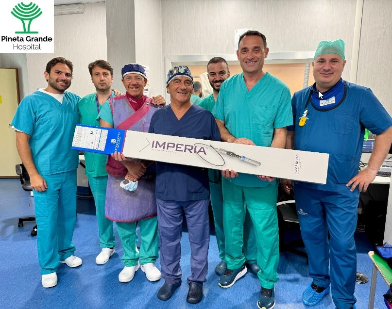 在IMPERIA?输送系统获批后联合ALLEGRA?于西班牙、德国完成全球首植后不久,意大利也传来喜讯,于那不勒斯Pineta Grande医院成功实现IMPERIA?输送系统与ALLEGRA?的联合植入。该植入针对一位高龄女性患者,由Arturo Giordano博士、Nicola Corcione博士、Michele Albanese博士和Alberto Morello博士团队完成,蓝帆柏盛国际团队现场支持。