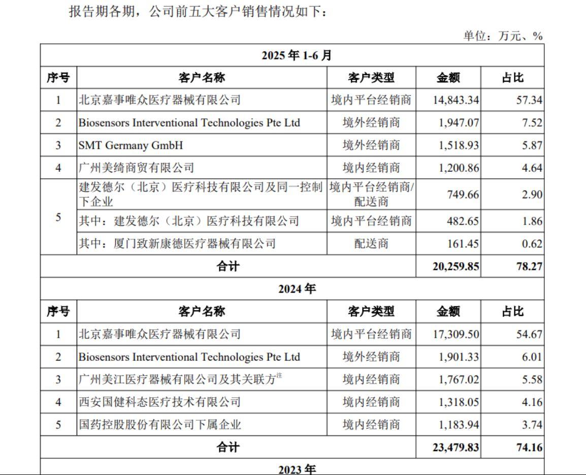 北芯生命的出海爆发,正是这套平台模式的最佳佐证。作为北芯生命境外第一大经销商,蓝帆医疗依托柏盛国际在欧洲、东南亚等地深耕多年的成熟渠道,直接帮北芯打通了出海“最后一公里”,助力其核心产品IVUS快速登陆全球市场、实现商业化放量。2024年,蓝帆医疗为北芯生命代理经销金额接近2,000万元;2025年1-6月仅半年时间,蓝帆医疗为北芯生命代理经销的营收体量,已直接超越2024年全年总和。