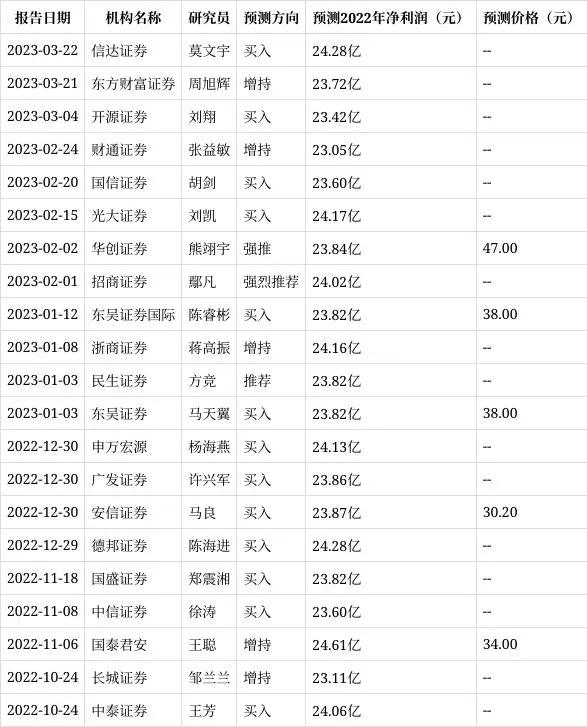 2023年3月22日,东山精密新增1家机构对其2022年度业绩做出预测。6个月内累计共21家机构,预测2022年净利润均值为23.86亿元,较去年同比增长28.11%。其中,13家机构“买入”,5家机构“增持”,1家机构“强推”,1家机构“强烈推荐”,1家机构“推荐”。目标价格最高预测47.00元,最低预测30.20元,平均为37.44元。