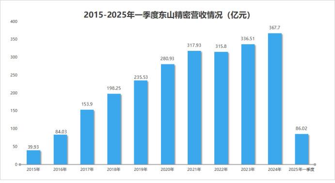 “通过垂直整合打造技术护城河,是东山精密持续成长的核心逻辑。”创始人袁永刚在年报中强调。从2015年40亿营收到如今368亿规模,资本运作与产业深耕的双螺旋,驱动着这家企业的进化。