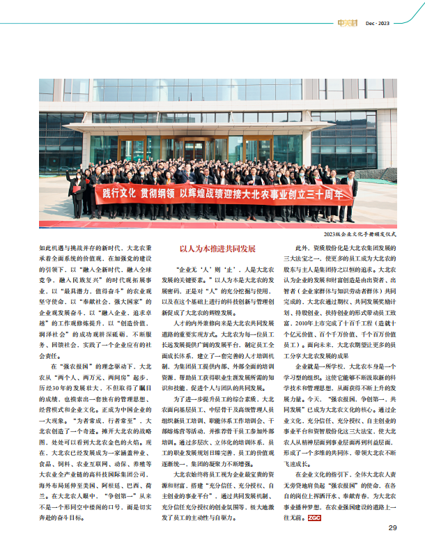 “企业无‘人’则‘止’,人是大北农发展的关键要素。”以人为本是大北农的发展密码,正是对“人”的充分挖掘与使用,以及在这个基础上进行的科技创新与管理创新促成了大北农的辉煌发展。