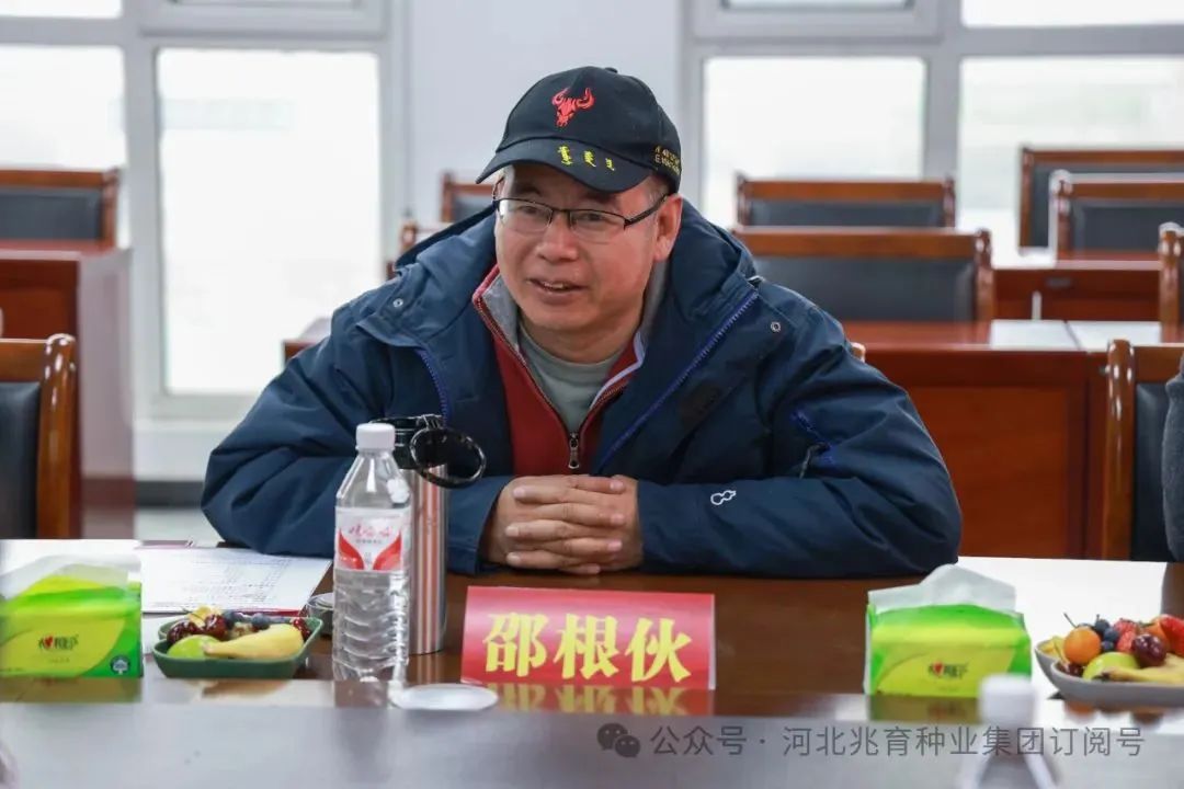 随后,双方在兆育集团总部会议室进行了座谈交流。座谈会上,兆育种业集团董事长赵育进主持会议并致辞,对大北农集团董事局主席邵博士一行的到来表示热烈欢迎,并介绍了双方参会人员。