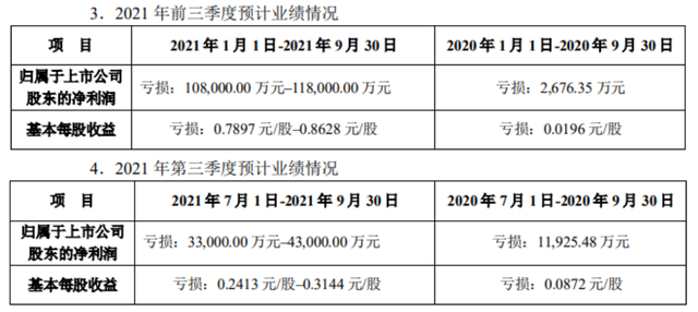 其中,预计7-9月预计实现归属于上市公司股东的净利润亏损3.3亿元-4.3亿元,上年同期亏损1.19亿元。