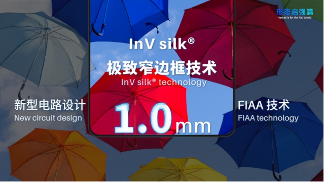 在形态启强方面,维信诺通过新型电路设计和FIAA技术的运用,使得边框从1.4mm降低到1.0mm;另外,通过折叠形态优化、堆叠模组减薄、模组材料优化等,实现更窄边框、更隐形的折痕、以及更小的折叠/卷曲半径。
