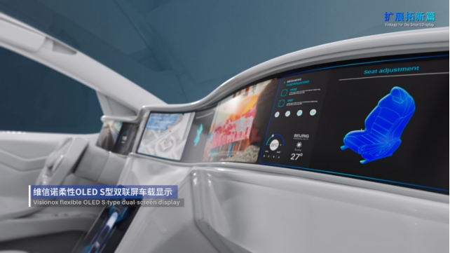 在扩展拓新方面,维信诺开发了叠层OLED技术和老化补偿技术外,并在氧化物显示背板、Demura等基础技术领域开展深入研究。基于这些基础性能的提升,AMOLED在中尺寸应用上得以发挥。维信诺展示了应用于笔记本电脑的柔性屏下摄像解决方案,配合1.8mm超窄边框技术,使屏占比从传统笔记本电脑的85%提升至91%。在中尺寸车载应用方面,目前维信诺已与多个汽车品牌合作推出了定制化的OLED车载显示产品,如仪表盘、电子后视镜、中控、透明A柱等。