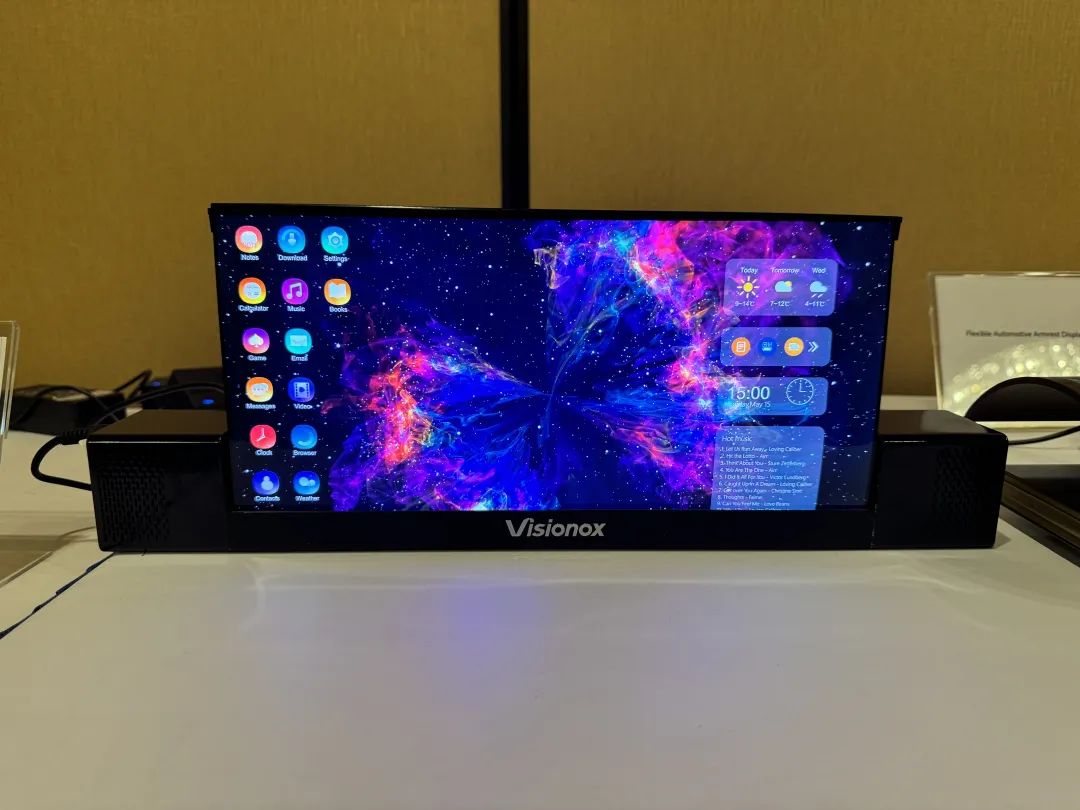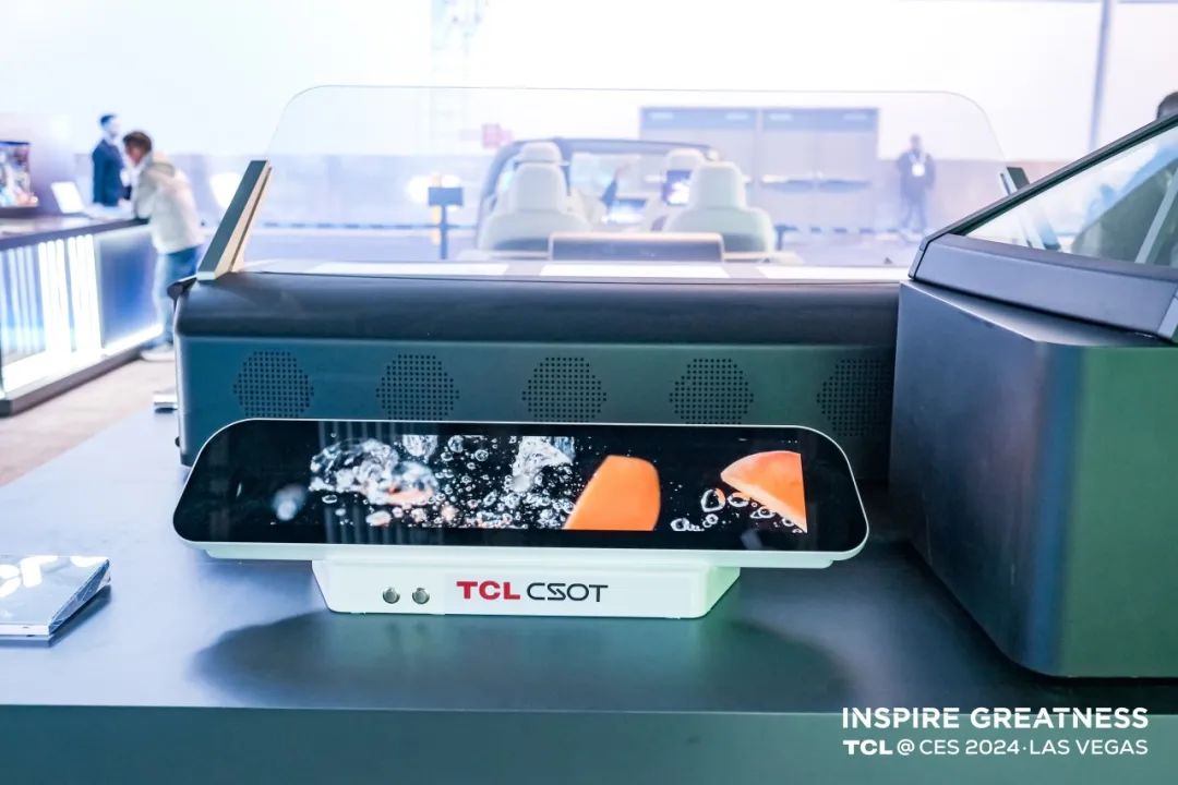在柔性车载显示领域,此次CES 2024展出的15.05 英寸车载 L 型中控屏具有1200nits超高亮度,1,000,000:1超高对比度,以及104%NTSC广色域等高画质特性,常温环境动态滑卷测量值达20万次,最大升降距离为50mm,可应用在仪表、副驾、后排、扶手等位置,使车辆内饰更具有科技感;极具创新性的f-OLED车尾灯产品将OLED显示技术应用于车辆照明领域,实现功能性与个性化美感的完美结合。