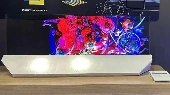 采用维信诺 12.3 英寸柔性 AMOLED 透明模组,运用新型像素及阴极结构设计、新型顶发射器件结构和透明边框设计,透过率达到 48%;车载透明显示模式与采光模式无缝切换,让行车状态、车外实景与即时信息实现完美融合。