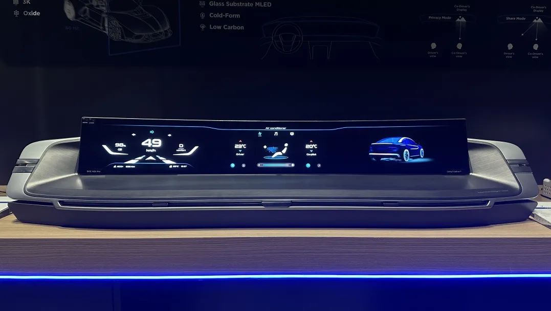 在氧化物技术领域,除了全球首发45英寸9K氧化物Mini LED车载贯穿屏,京东方精电还展示了具有高透过率、高对比度、高色域、窄边框、高性价比等优势的14.6英寸2.5K氧化物产品。其中广汽埃安Hyper GT中控现已搭载京东方精电提供的国内首款14.6英寸氧化物Incell车载宽幅显示屏,开创了大尺寸氧化物车载显示产品量产的先河。