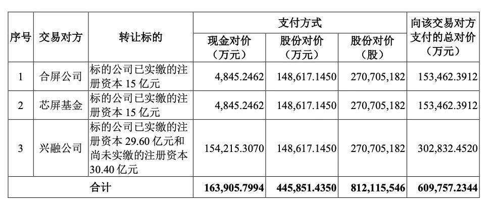 从时间线来看,自2018年引入战略投资者以来,三家合肥国资股东持有合肥维信诺的股份已长达六年半。2023年初,维信诺披露重大资产重组预案,据维信诺之后披露的交易草案,公司拟通过发行股份及支付现金的方式,购买合肥维信诺40.9%的股权,并募集配套资金。交易对价约61亿元,其中现金对价16.4亿元,虽然是支付现金,但仍然依靠定增的方式募集;股份对价44.6亿元,则是直接向三家合肥国资公司发行股份。