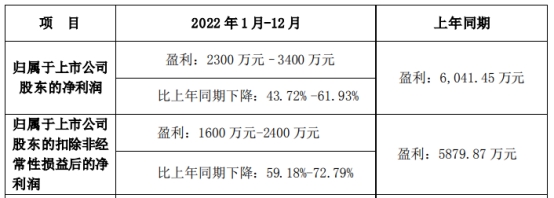 新亚制程1月31日披露2022年度业绩预告显示,公司预计2022年度归属于上市公司股东的净利润为2300万元至3400万元,比上年同期下降43.72%至61.93%;预计归属于上市公司股东的扣除非经常性损益后的净利润为1600万元至2400万元,比上年同期下降59.18%至72.79%。