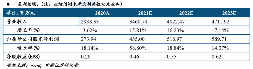 我们预测公司2021、2022、2023年归母净利润分别为4.35亿元、5.17亿元、5.90亿元,EPS为0.46元、0.55元、0.62元,当前股价对应PE分别为53.87倍、45.05倍、39.97倍,结合公司盈利能力及行业景气程度,同时参考同行业平均水平,给予公司2021年60倍PE水平,给予“买入”评级,目标价格为27.60元。