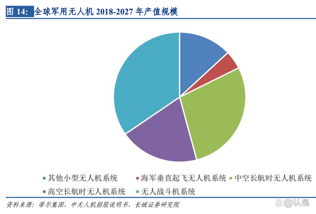 2018 年至 2027 年,全球军用无人机主要产值集中在无人战斗机系统、中空长航时无人机系统及高空长航时无人机系统领域,其中中空长航时无人机系统及高空长航时无人机系统十年总产值为 430.50 亿美元,市场发展空间广阔。公司主要产品彩虹-4 中空侦察/打击无人机、彩虹-5 中高空长航时无人机属于上述统计数据中的中空长航时无人机系统及高空长航时无人机系统。中空长航时无人机系统及高空长航时无人机系统约占整个军用无人机市场 48%的市场份额,在军用侦察监视、火力打击、反潜巡逻等领域具有广泛的应用和广阔的市场发展空间。