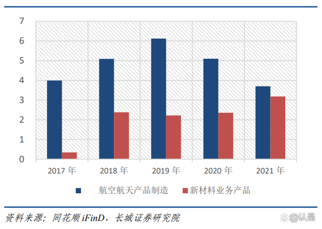 2021 年公司无人机及相关产品营业收入为 11.18 亿元,同比增长 5.15%,2020 年因无人机出口业务受疫情影响,公司总营业收入略有下滑。在营业收入占比方面,公司 2021 年航空航天产品制造收入占总营业收入的 49.86%,自资产重组后,该行业的营业收入常年保持总营业收入的 50%左右。根据 2022 年一季度报以及投资者关系活动记录表中显示,今年一季报实现营收 7.2 亿,同比增长 46%左右,归母净利润同比增长 82%,且营收增长主要来自无人机板块,新材料板块营收略有下降,预计今年航空航天产品制造收入比重将达到 60%,同时在绝对数值上实现较大幅度增长。