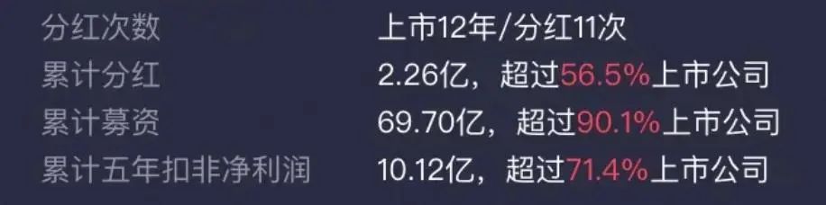 自由现金流无法沉淀,意味着股东回报能力无法建立,上市12年以来,公司累计募资70亿元,累计现金分红仅约2亿元。