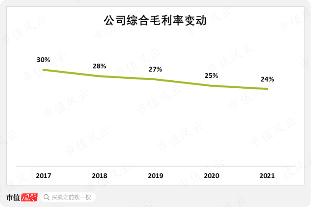 两类核心业务毛利率一增一减,使得公司的综合毛利率变动幅度不大,2021年为24%,同比仅有小幅下滑。