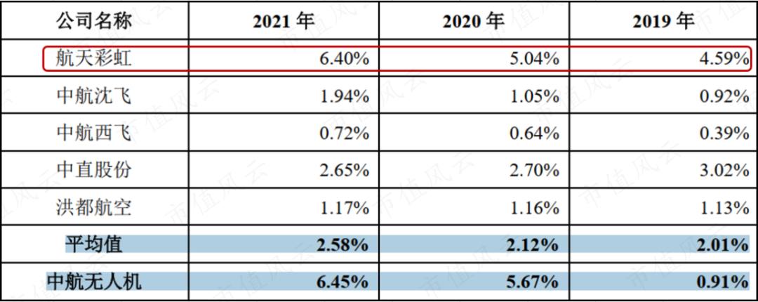 单从研发费用投入来看,2020、2021两年公司的研发费用率与中无人机相当,而远高于各期其他主机厂的研发费用率平均水平线。