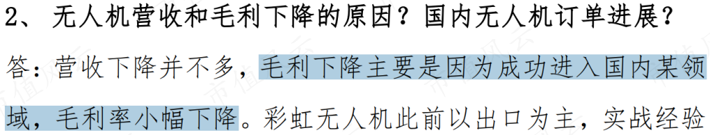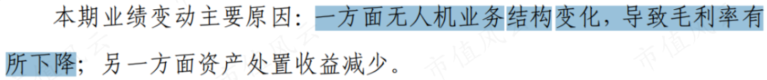 公司自述,无人机毛利率的下降主要是由无人机业务结构变化所致。