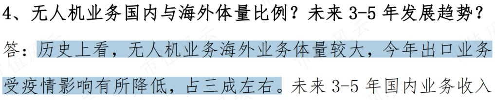 最近两年主要受疫情影响,无人机出口业务有所降低,导致无人机收入下滑明显。