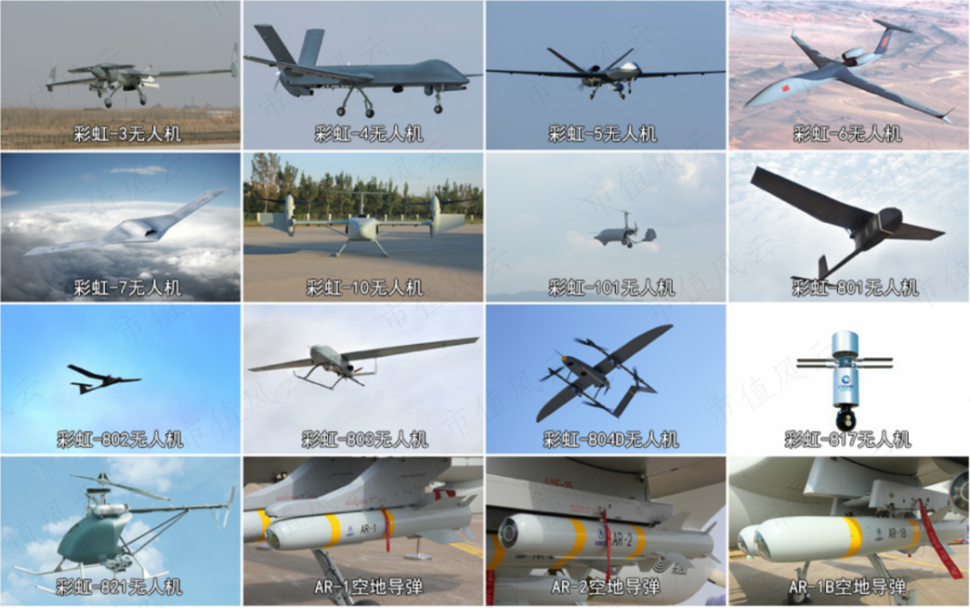 公司的无人机主业依托十一院空气动力技术传统优势,经过二十余年发展,形成了覆盖“大、中、小”型、“远、中、近”程的完整无人机产品体系,研制出以彩虹-3、彩虹-4、彩虹-5等为代表的一系列尖端产品。