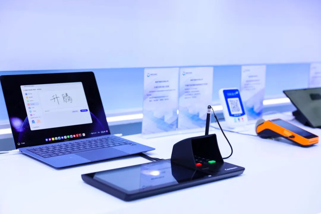 升腾自研的电子签名柜外清作为行业首款通过OpenHarmony兼容性测评的产品,率先实现与鸿蒙PC的无缝联动,从硬件到系统全面实现自主可控,应用于金融网点柜面业务办理场景。产品通过实现纸质凭证、客户签名、银行签章的电子化,推进柜面全业务流程无纸化,大幅节约办理业务时间,效率整体提升约30%。