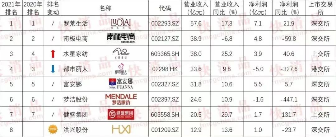除了股东债务危机,梦洁股份的主营家纺业务也深陷低迷,上海市东方世纪消费品发展促进中心(简称:“东方快消品中心”)携行业领先全媒体--《快消品》汇总了在上交所、深交所、港交所、北交所上市的300余家大快消相关公司2021年业绩,按品类并通过主要经营指标——营业收入进行排名,公布的“2021年中国大快消上市公司之针纺8强”中,梦洁股份亏损达1.56亿元,系自2005年上市以来的首个亏损年度。梦洁股份称,亏损原因主要是因公司经营受到影响,回款情况不佳,公司应收款项坏账准备、存货跌价准备等增加,公司2021年发生信用减值损失及资产减值损失共计1.65亿元,同比增长超6倍。