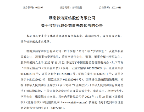 梦洁股份于2010年上市,属于纺织品行业,实控人为姜天武。近日,梦洁股份公告了其董事长、副董事长、董秘等一众人收到证监会行政处罚的公告,上市公司一众高管均收到处罚,这也是比较罕见的了。
