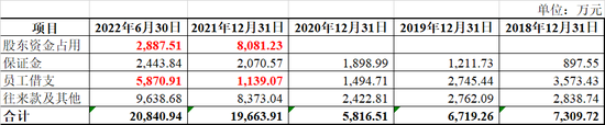 对比公司2020年以来的年报和半年报可以发现,公司自2021年年报开始单独披露了股东资金占用这一项内容,也的确是从2021年年报开始,公司报表的其他应收款余额猛增: