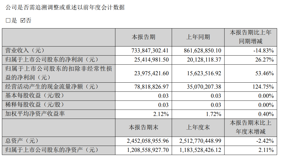 2025上半年,梦洁股份实现营业收入7.34亿元,同比减少14.83%;归属于上市公司股东的净利润2541.5万元,同比增长26.27%。