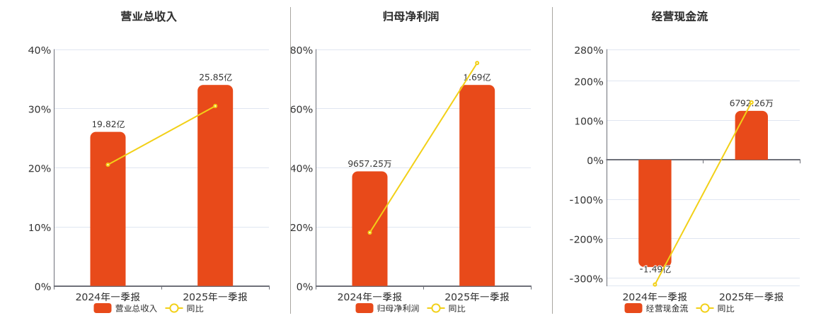 公司营业总收入为25.85亿元。归母净利润为1.69亿元。经营活动现金净流入为6792.26万元。